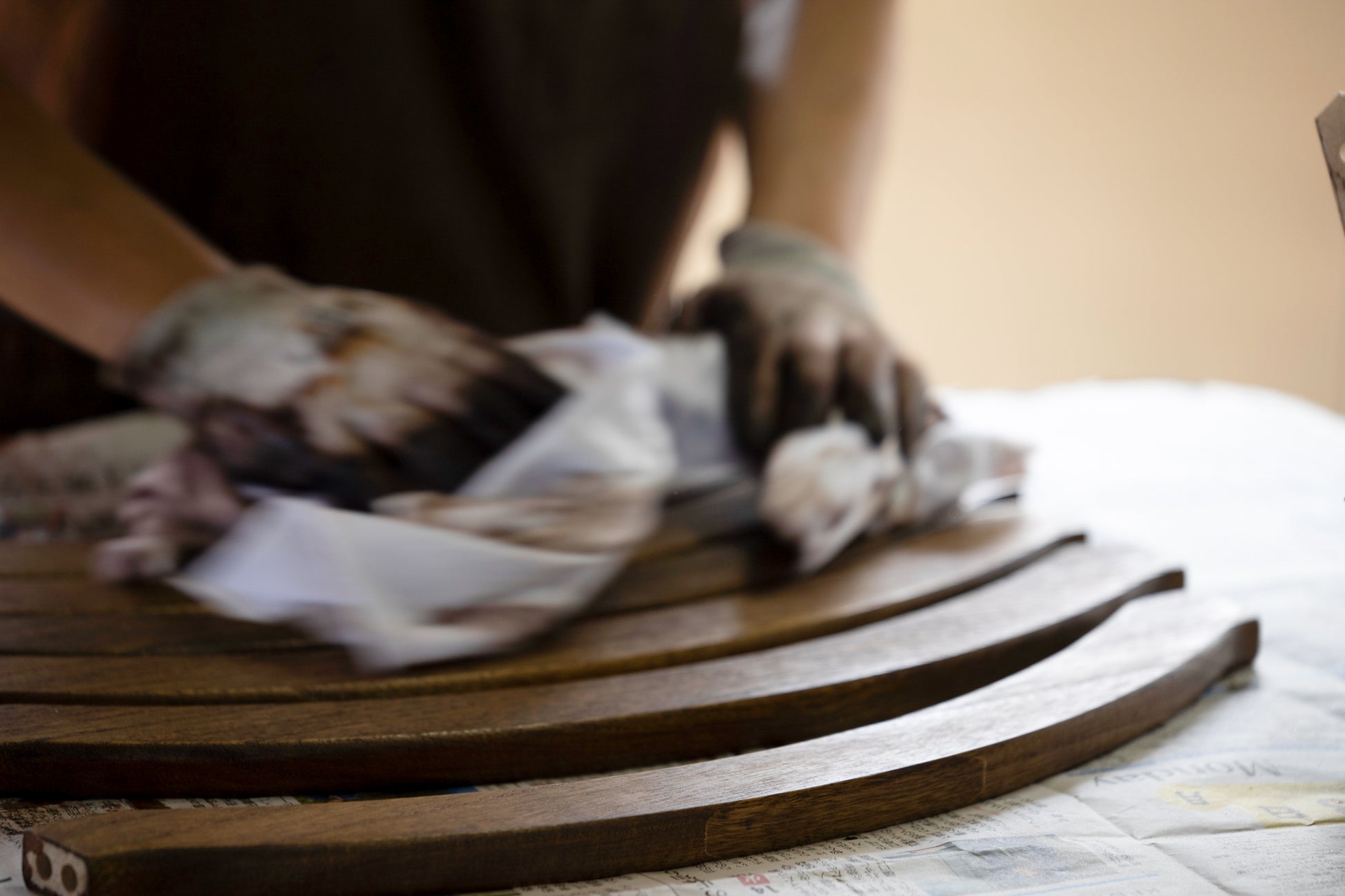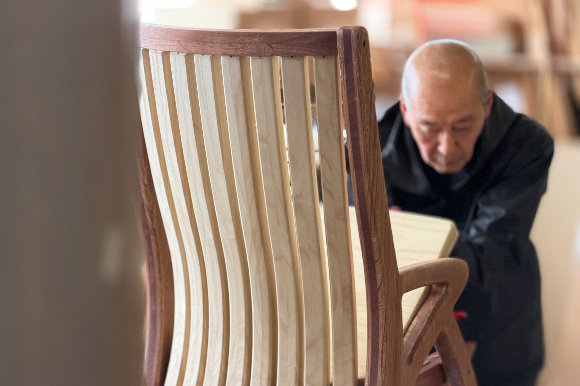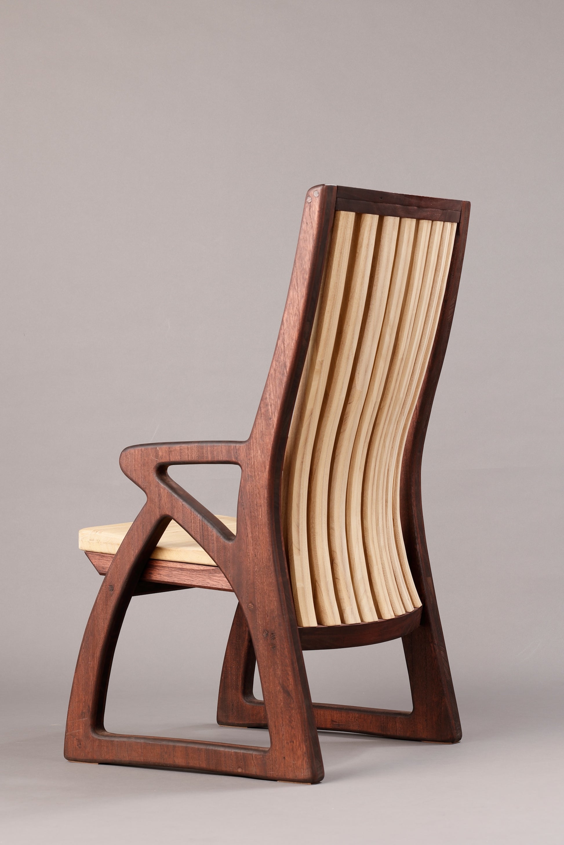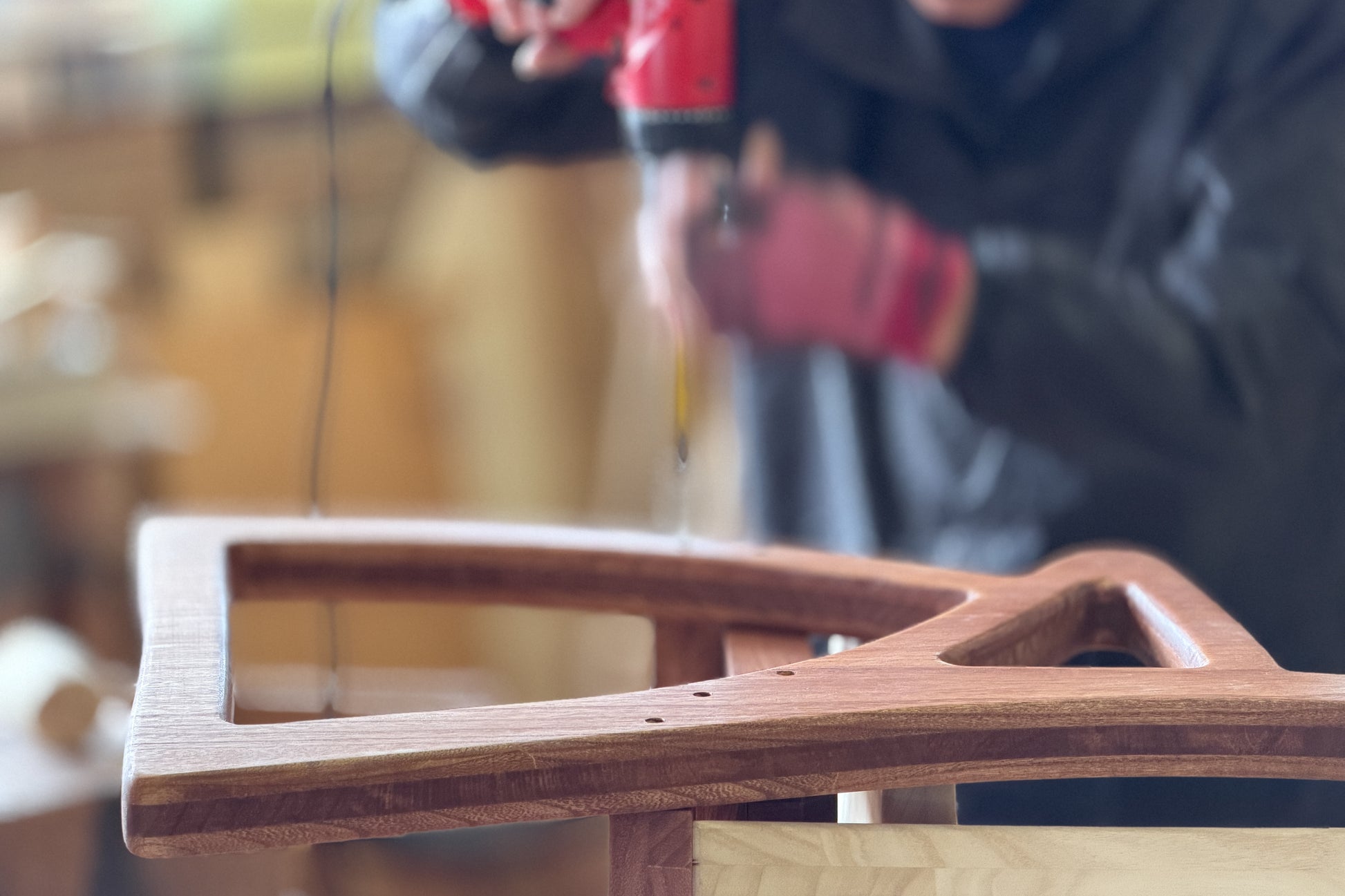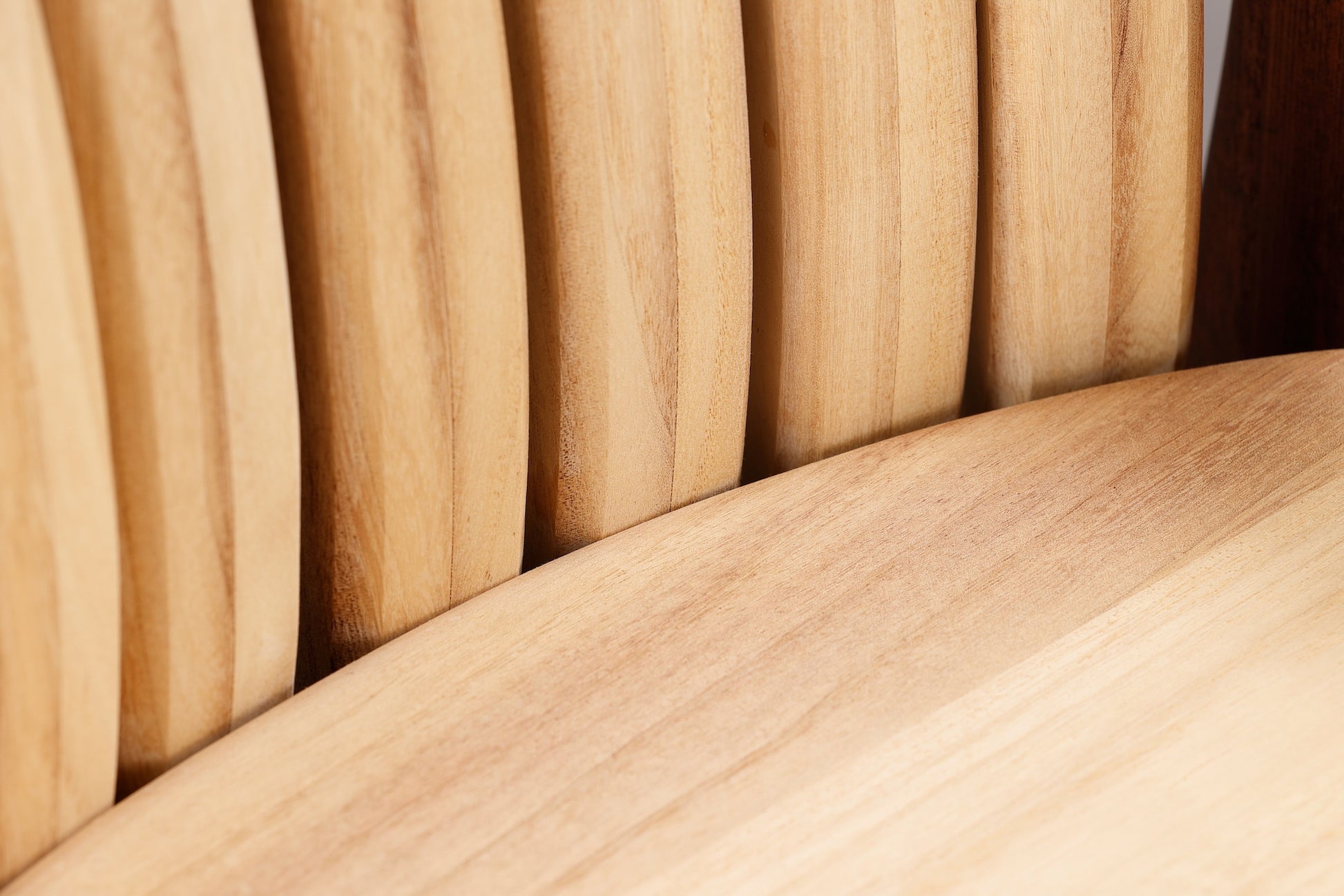 木材を切り抜いて整形しておりますので繋ぎ目がなく、角が一切ないデザインとなっております。